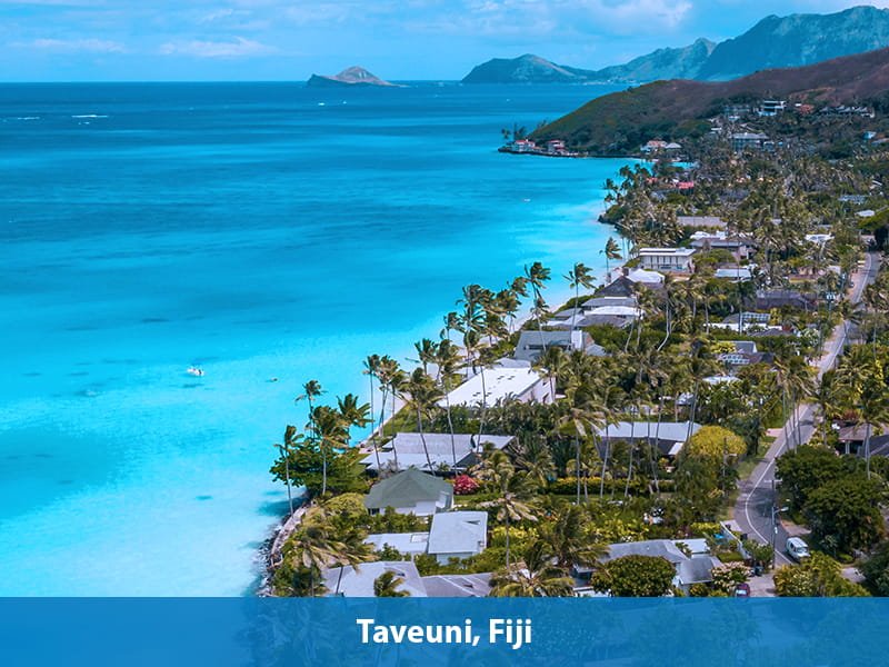 Taveuni, known as Fiji’s Garden Island, feels like nature’s love letter. Rainforests spill into waterfalls. Hidden beaches wait without footprints. Bougainvillea, palms, and orchids color every path.